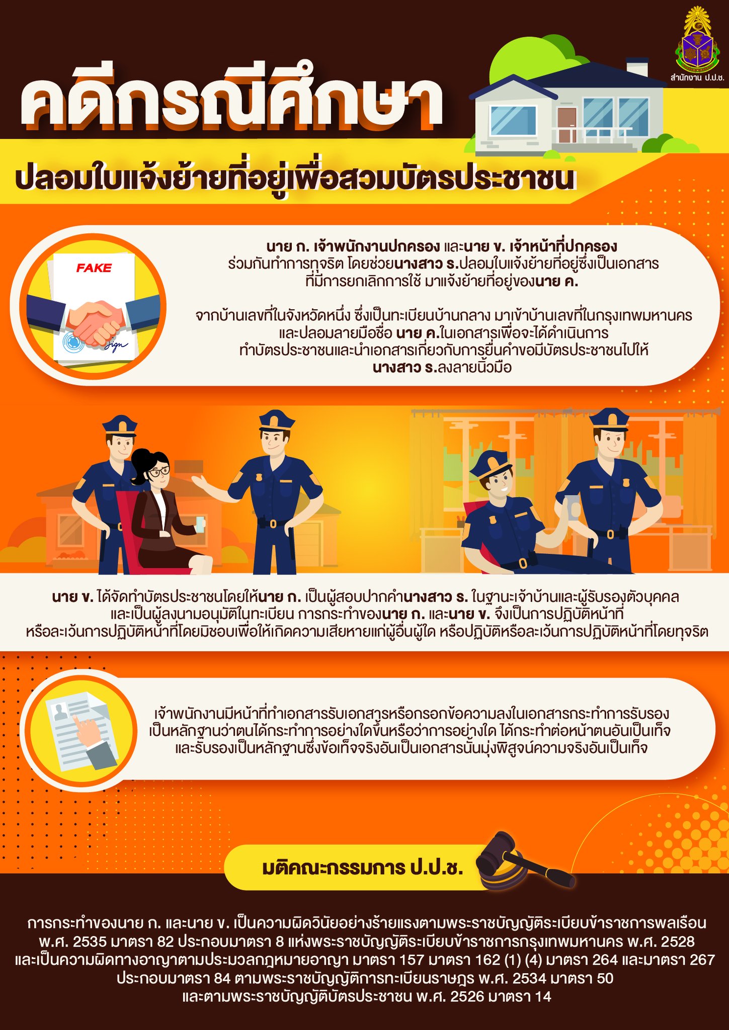สำนักงานคณะกรรมการป้องกันและปราบปรามการทุจริตแห่งชาติ แจ้งเตือนปลอมใบแจ้งย้ายที่อยู่เพื่อสวมบัตรประชาชน