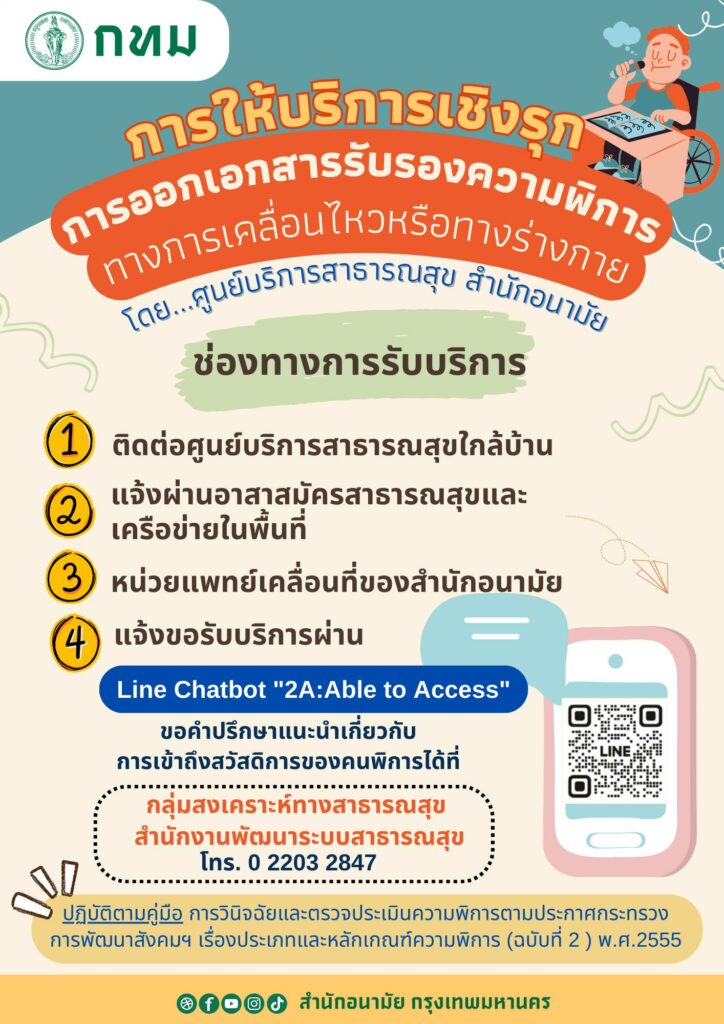 กทม. แนะนำ 4 ช่องทางการรับบริการออกเอกสารรับรองความพิการทางการเคลื่อนไหวหรือทางร่างกาย