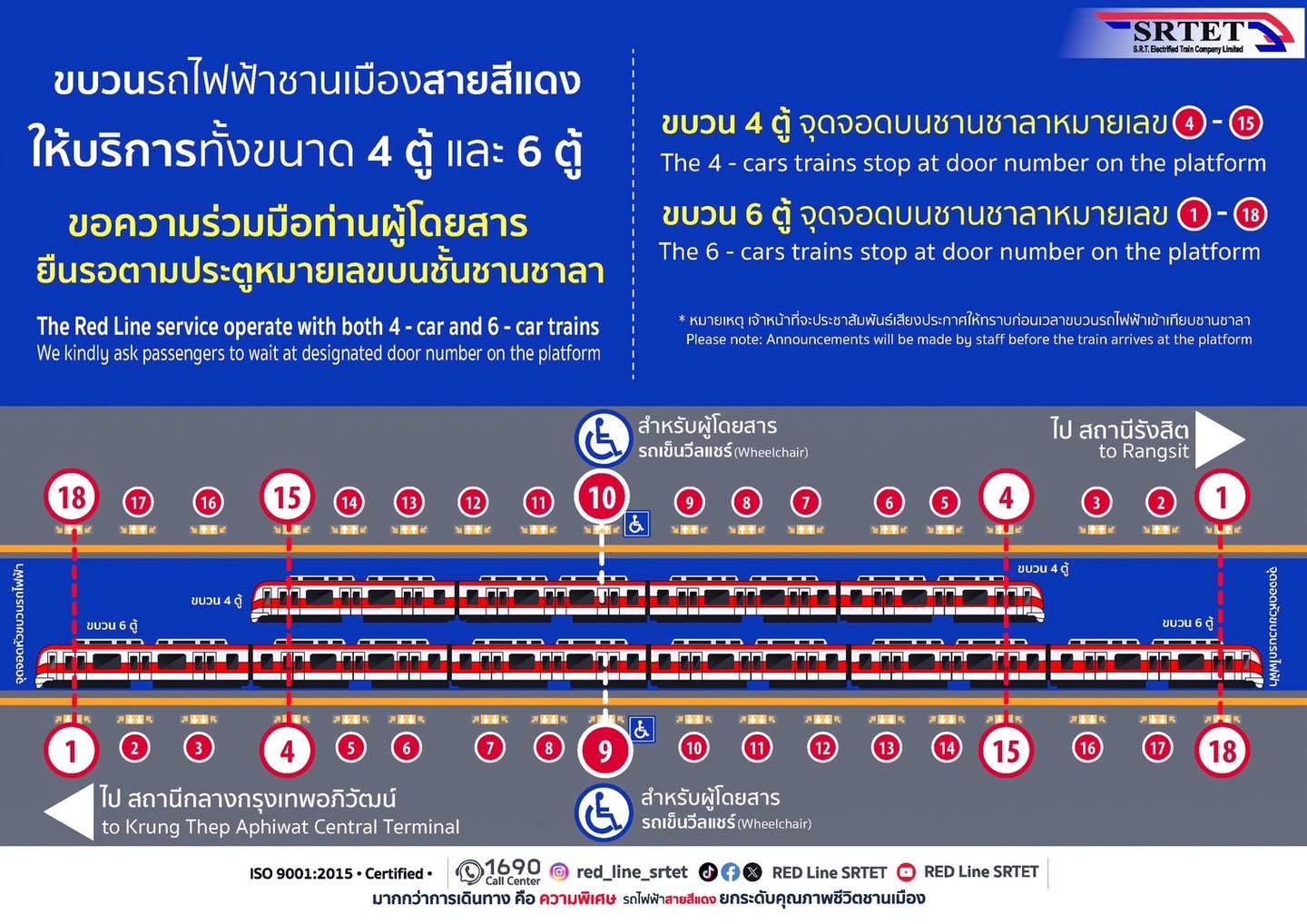 ขอความร่วมมือผู้โดยสารยืนรอตามประตูหมายเลขบนชั้นชานชาลา ดังนี้