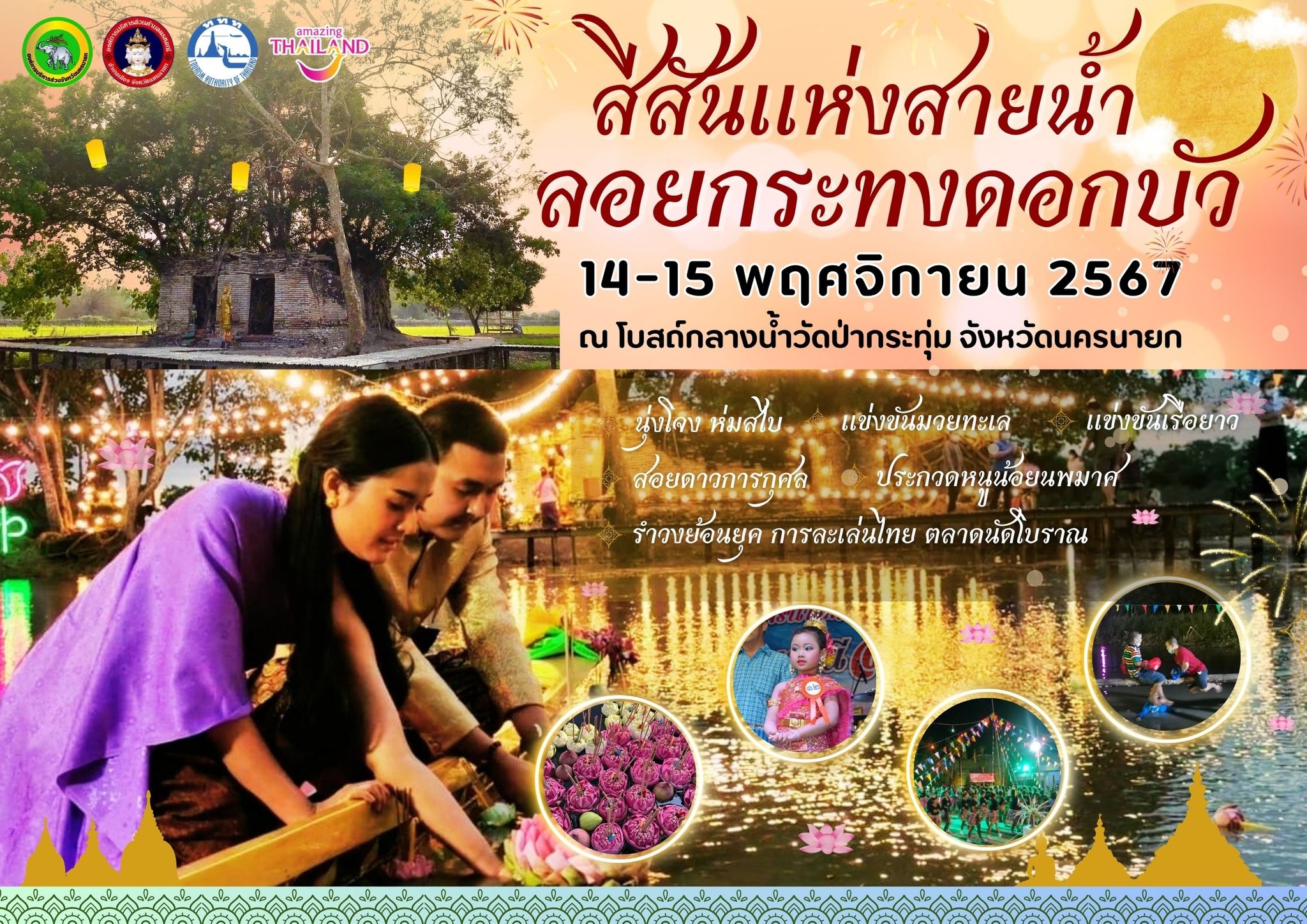 ททท. สำนักงานนครนายก เชิญร่วมงาน สีสันแห่งสายน้ำประเพณี ลอยกระทงดอกบัว ปี 2567