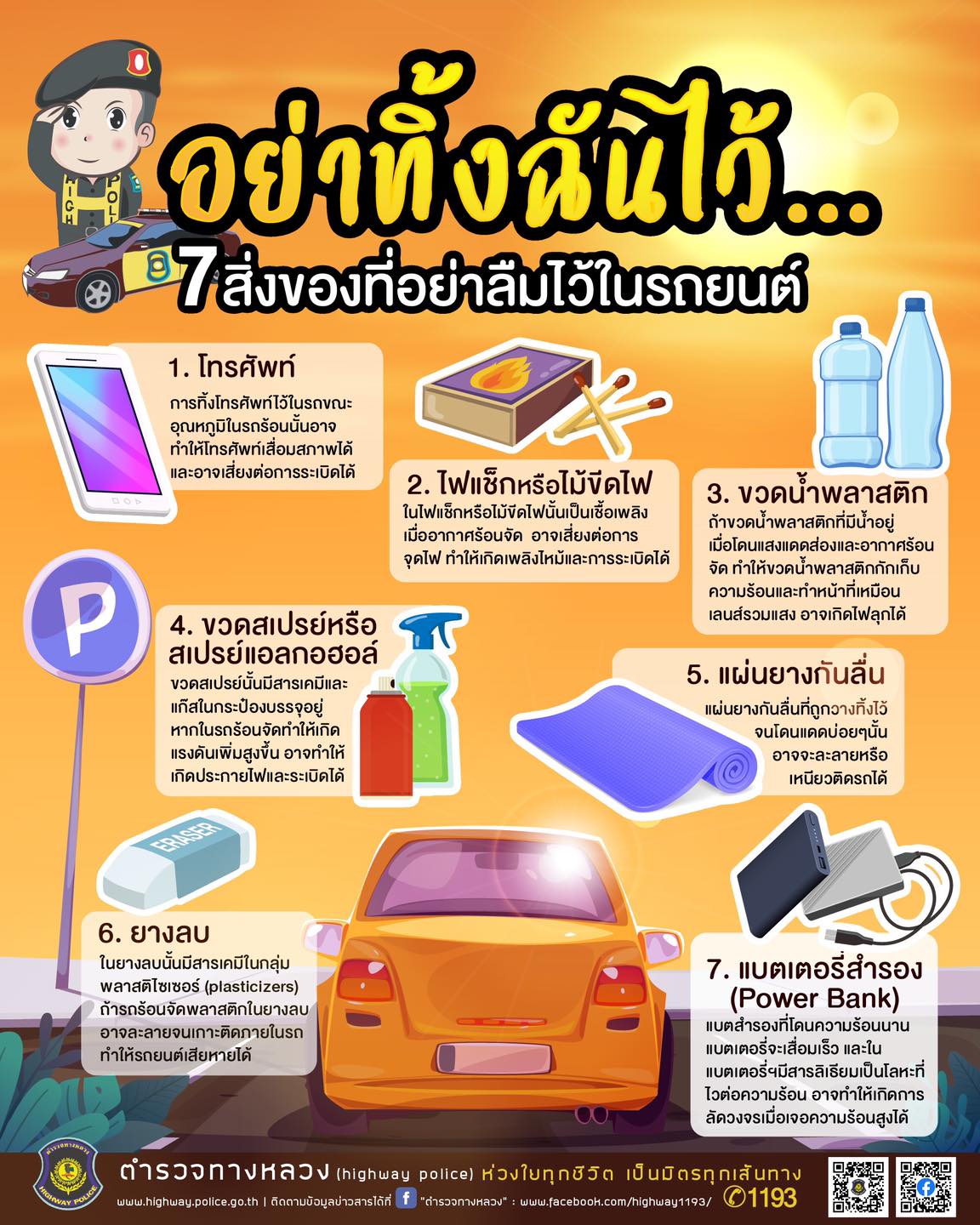 ตำรวจทางหลวง แจ้ง 7 สิ่งของที่อย่าลืมไว้ในรถยนต์