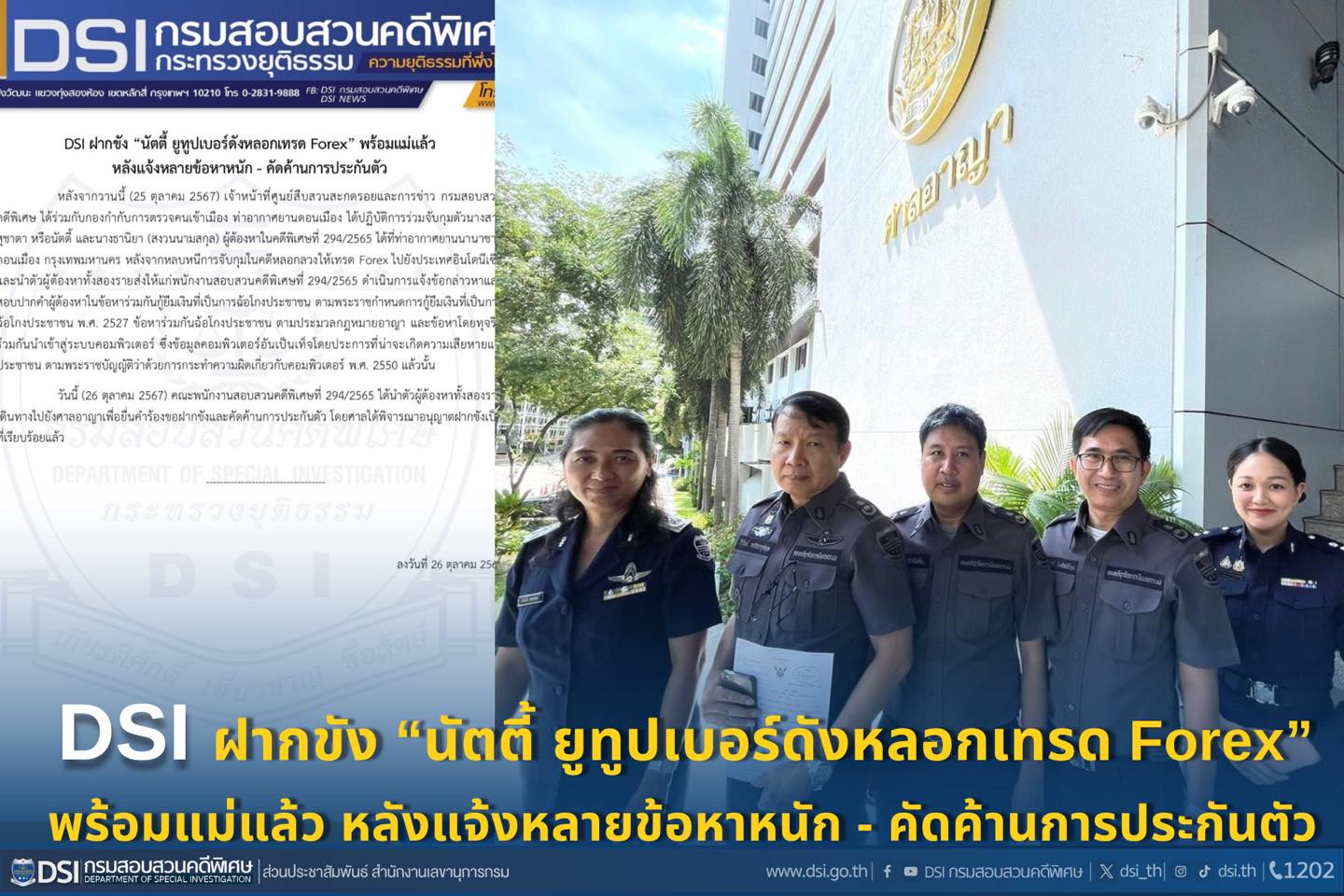 กรมสอบสวนคดีพิเศษ ดำเนินการฝากขัง นัตตี้ ยูทูปเบอร์ดังหลอกเทรด Forex