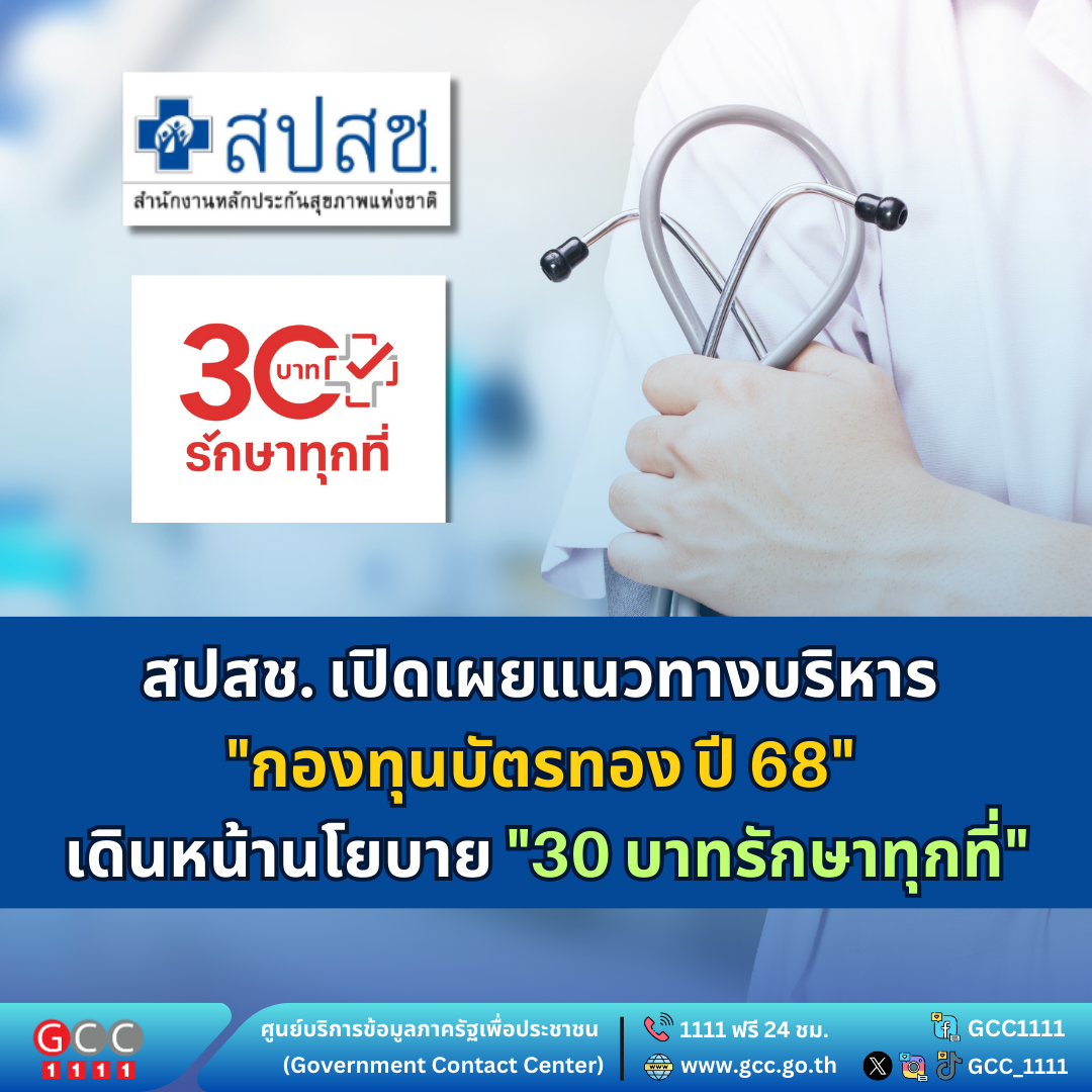 สปสช. เปิดเผยแนวทางบริหาร “กองทุนบัตรทอง ปี 68” เดินหน้านโยบาย “30 บาทรักษาทุกที่”