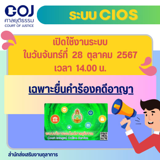สำนักงานศาลยุติธรรม แจ้งเปิดระบบ CIOS วันที่ 28 ตุลาคม 2567