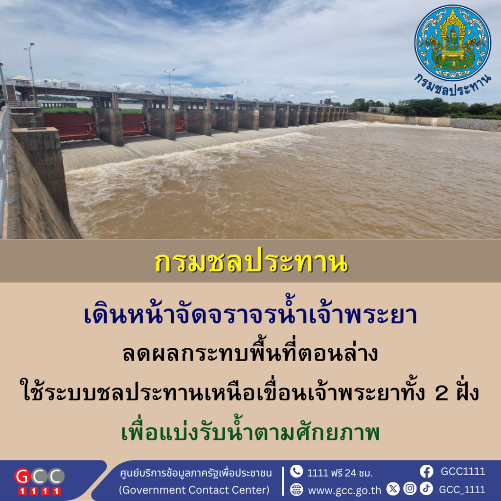 กรมชลประทาน จัดจราจรลุ่มน้ำเจ้าพระยา เพื่อลดผลกระทบของพื้นที่ตอนล่าง