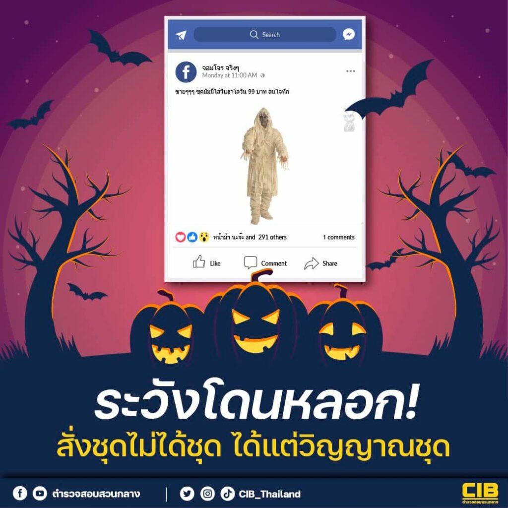 กองบัญชาการตำรวจสอบสวนกลาง แจ้งเตือนระวังโดนหลอก สั่งชุดผีช่วงฮาโลวีน แล้วไม่ได้ชุด