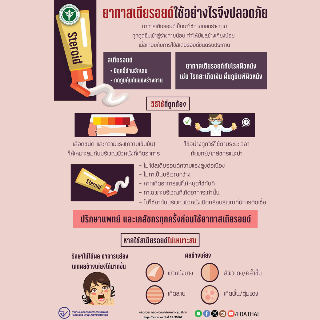 - ปรึกษาแพทย์ และเภสัชกรทุกครั้งก่อนใช้ยาทาสเตียรอยด์