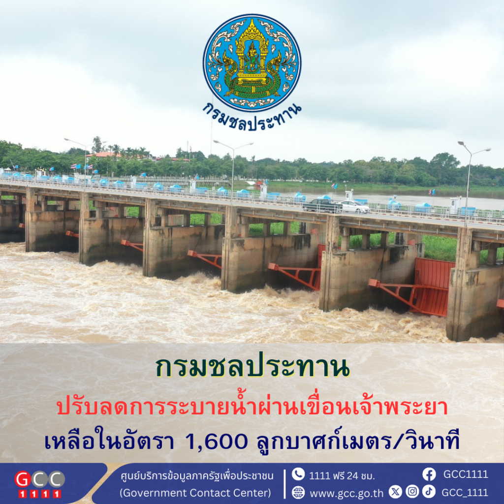 กรมชลประทาน ปรับลดการระบายน้ำผ่านเขื่อนเจ้าพระยา