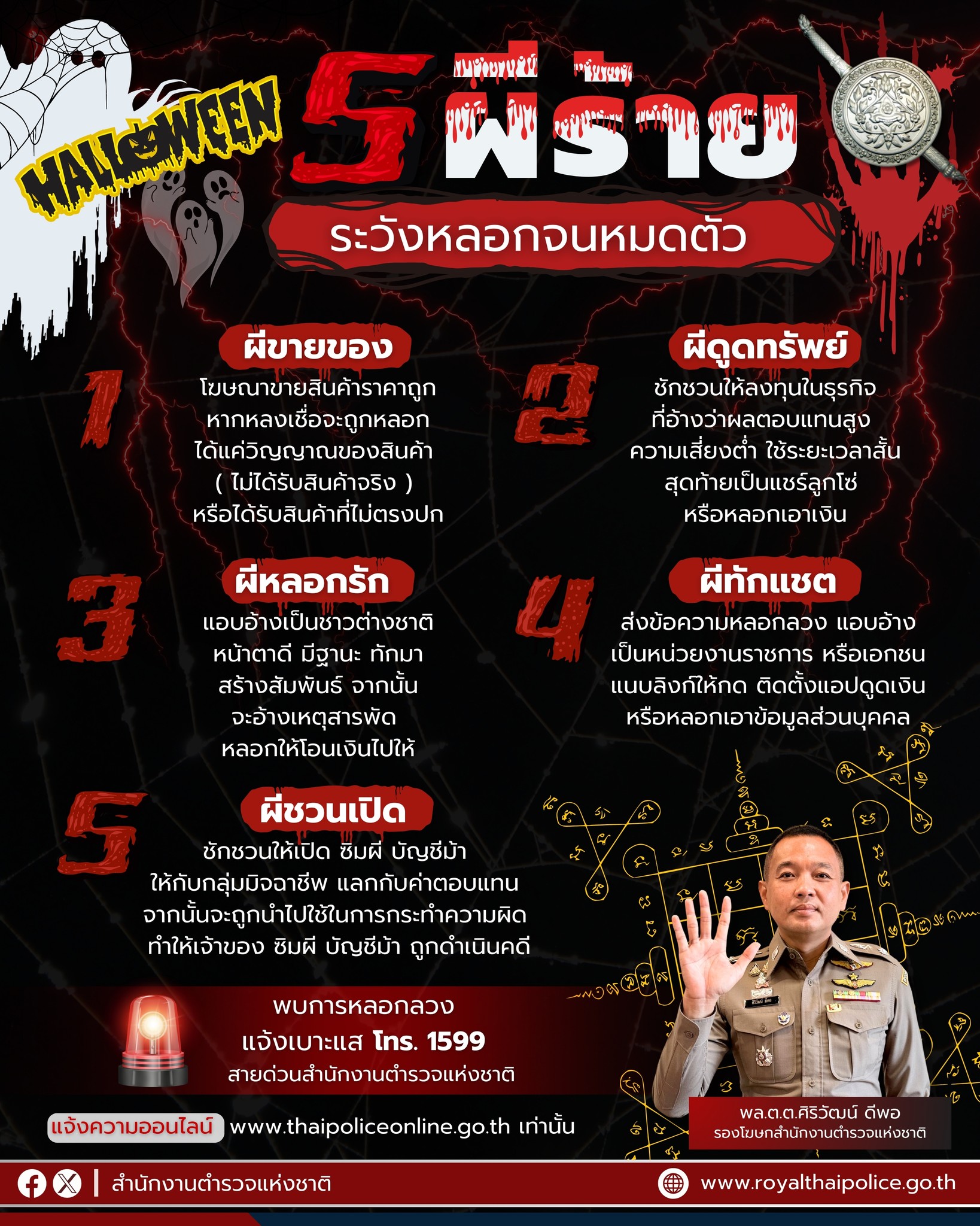 สำนักงานตำรวจแห่งชาติ แจ้งเตือน 5 ผีร้ายฮาโลวีน ที่จะมาหลอกหลอนคุณจนหมดตัว