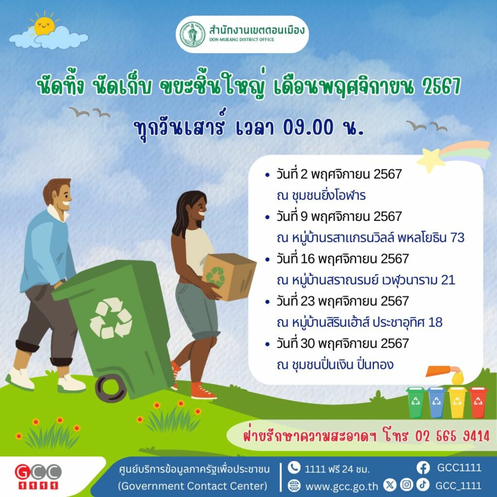 สำนักงานเขตดอนเมือง นัดทิ้ง นัดเก็บ ขยะชิ้นใหญ่ เดือนพฤศจิกายน 2567