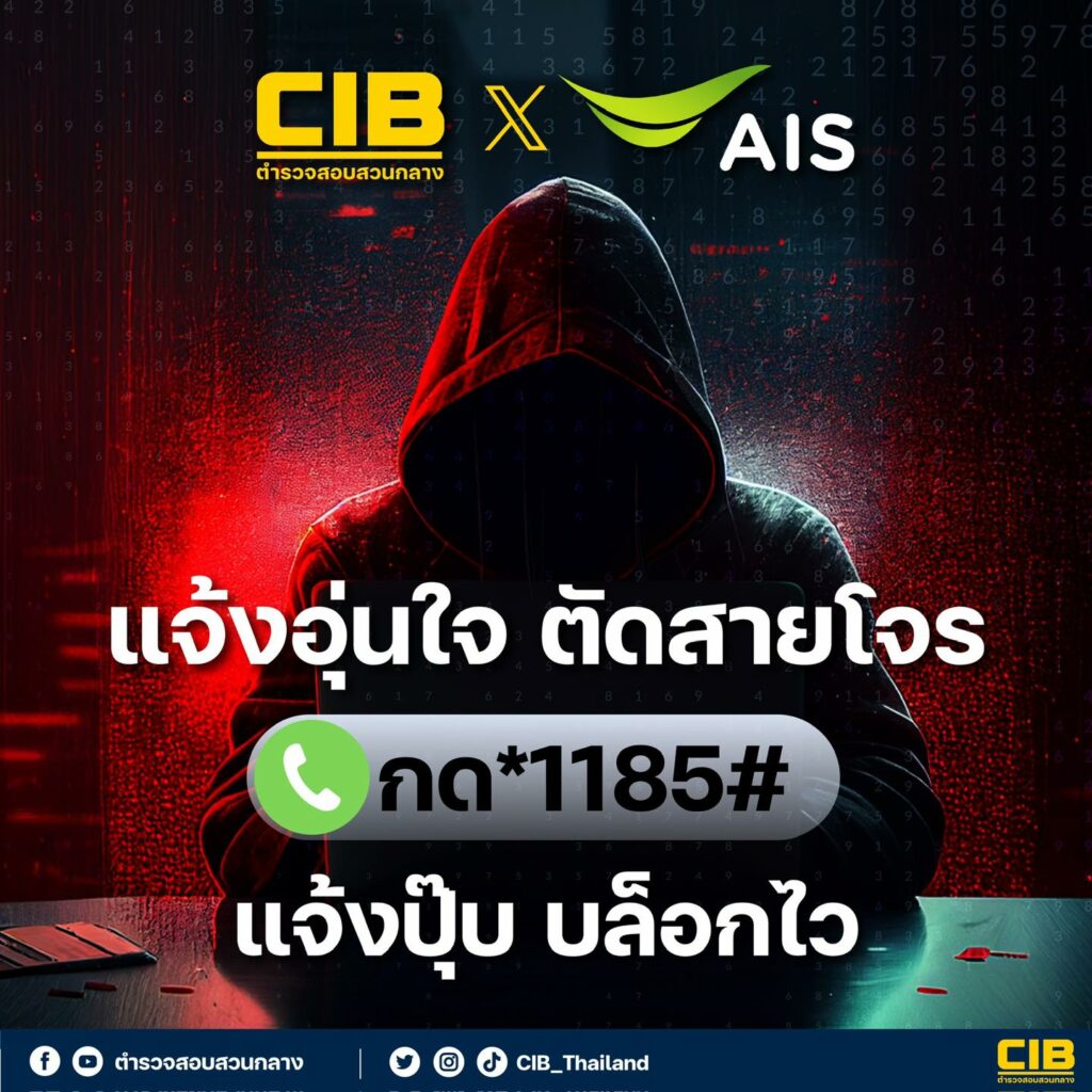 กองบัญชาการตำรวจสอบสวนกลาง ร่วมกับ AIS เปิดบริการแจ้งอุ่นใจ ตัดสายมิจฉาชีพ *1185#