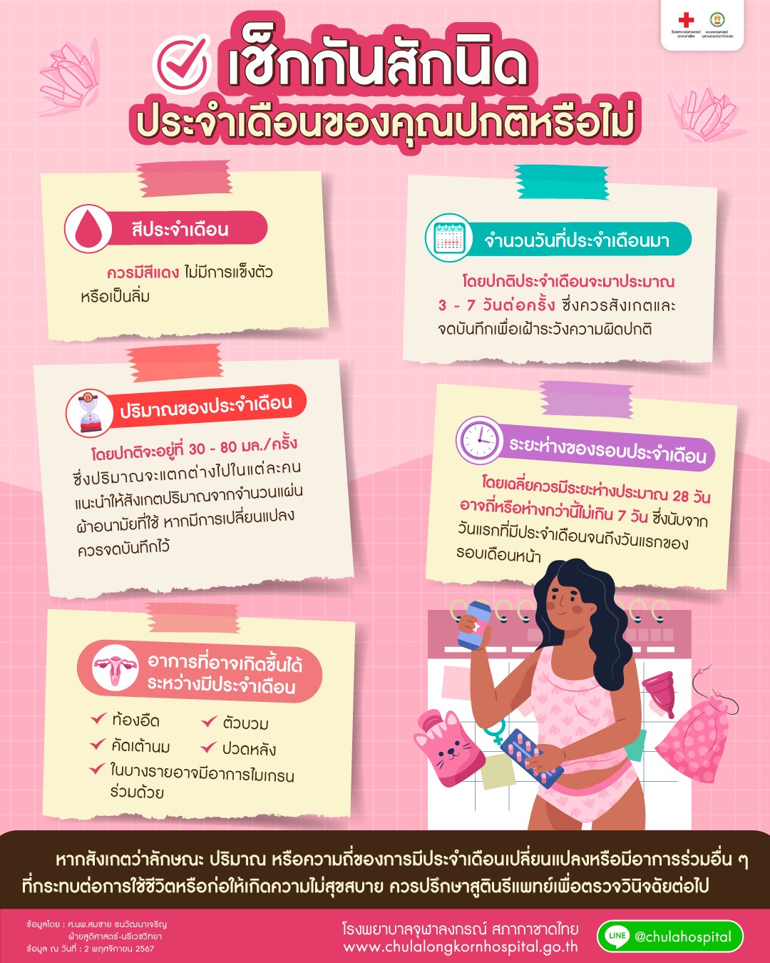 โรงพยาบาลจุฬาลงกรณ์ สภากาชาดไทย แนะนำเช็กกันสักนิด ประจำเดือนของคุณปกติหรือไม่