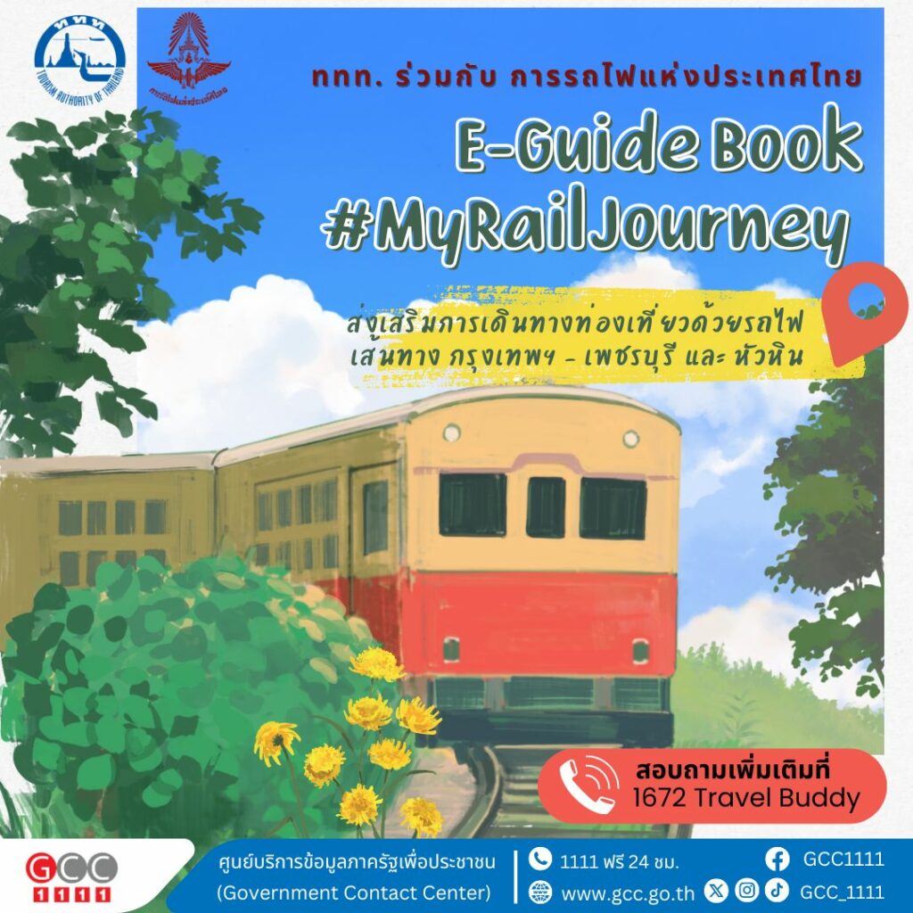 การท่องเที่ยวแห่งประเทศไทย ร่วมกับ การรถไฟแห่งประเทศไทย ได้จัดทำ E-Guide Book #MyRailJourney ส่งเสริมการเดินทางท่องเที่ยวด้วยรถไฟ เพื่อเป็นแรงบันดาลใจในการเดินทางท่องเที่ยวด้วยรถไฟ เปิดมุมมองใหม่ในการเดินทางที่ใส่ใจสิ่งแวดล้อม เจาะกลุ่มเป้าหมายนักท่องเที่ยว GenS ซึ่งเป็นเสมือนไกด์นำเที่ยวคนสำคัญในการออกเดินทาง โดยประเดิมด้วยแหล่งท่องเที่ยวยอดนิยมในเส้นทาง กรุงเทพมหานคร – เพชรบุรี และ หัวหิน ประจวบคีรีขันธ์ ทั้งนี้ สามารถดาวน์โหลด E-Guide Book #MyRailJourney ได้ที่ https://tourismproduct.tourismthailand.org/2024/10/23/rail-journey/ และสอบถามข้อมูลเพิ่มเติมได้ที่ โทร. 1672 Travel Buddy