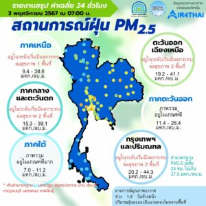 ศกพ. รายงานการติดตามตรวจสอบคุณภาพอากาศ วันที่ 3 พฤศจิกายน 2567 เวลา 07.00 น.