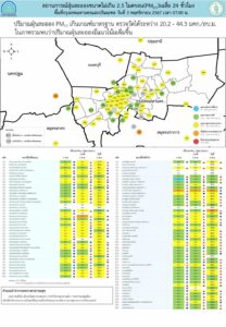 - กรุงเทพมหานครและปริมณฑล เกินค่ามาตรฐาน 2 พื้นที่ ตรวจวัดได้ 20.2 – 44.3 ไมโครกรัมต่อลูกบาศก์เมตร