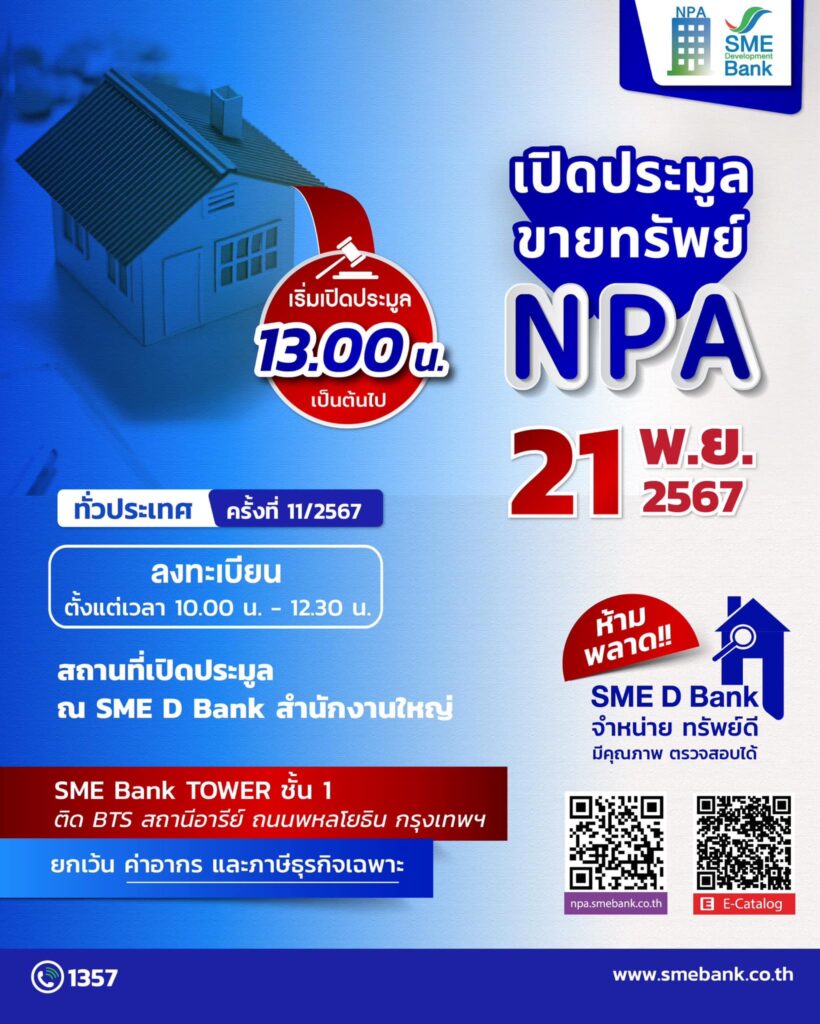 SME D Bank จัดงานประมูลขายทรัพย์ NPA ทั่วประเทศ ครั้งที่ 11 /2567 ในวันที่ 21 พฤศจิกายน 2567 ข่าวสารกิจกรรม SME D Bank จัดงานประมูลขายทรัพย์ NPA ทั่วประเทศ ครั้งที่ 11 /2567 ในวันที่ 21 พฤศจิกายน 2567 ธนาคารพัฒนาวิสาหกิจขนาดกลางและขนาดย่อมแห่งประเทศไทย จัดงานประมูลขายทรัพย์ NPA ทั่วประเทศ ครั้งที่ 11 /2567 วันพฤหัสบดีที่ 21 พฤศจิกายน 2567 ลงทะเบียน ตั้งแต่เวลา 10.00 – 12.30 น. ณ SME Bank ณ สำนักงานใหญ่ เริ่มเปิดประมูล เวลา 13.00 น. เป็นต้นไป หมายเหตุ : ยกเว้น ค่าอากร และภาษีธุรกิจเฉพาะ ที่มา : https://citly.me/DY5JC Post Views: 20 FacebookFacebookXTwitterLINELine