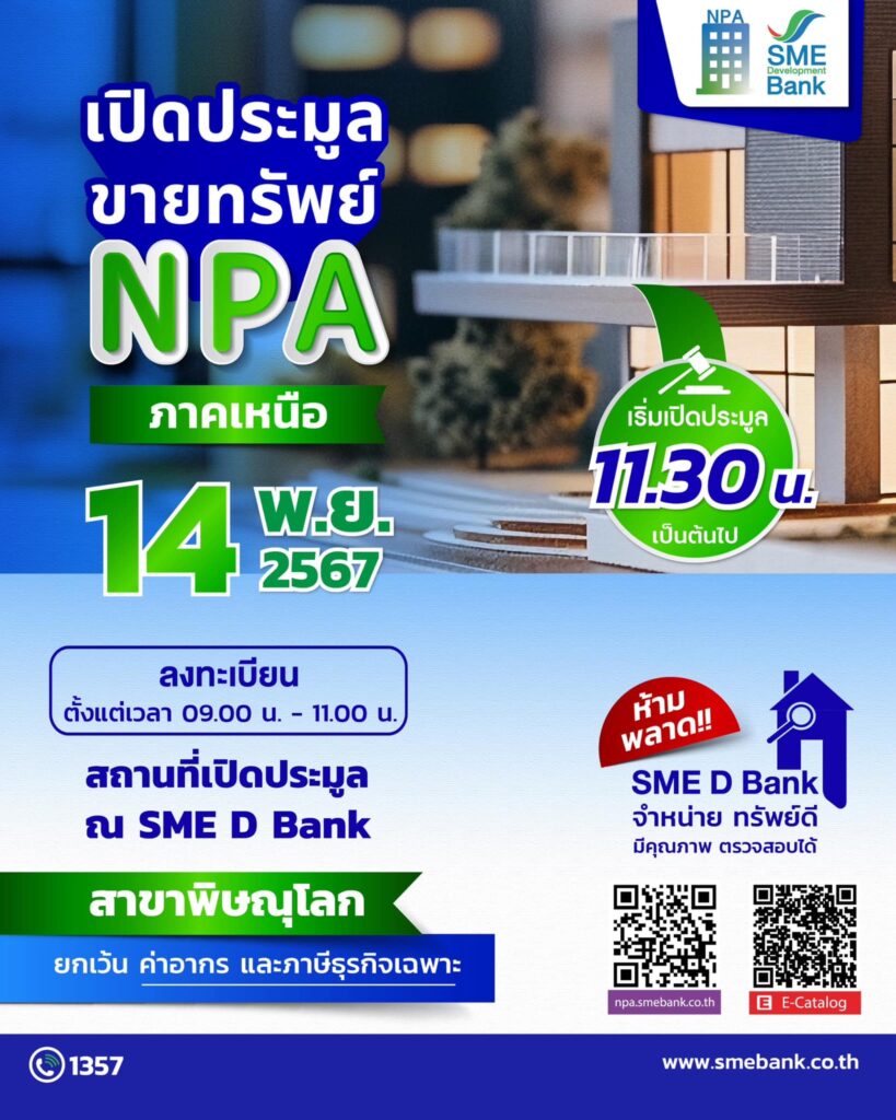 SME D Bank จัดงานประมูลขายทรัพย์ NPA ภาคเหนือ ในวันที่ 14 พฤศจิกายน 2567