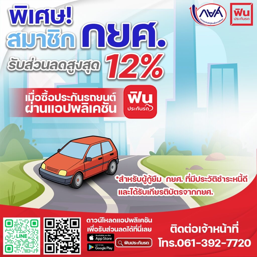 กยศ. แนะนำสมาชิก กยศ. รับส่วนลดสูงสุด 12% เมื่อซื้อประกันรถยนต์ ผ่านแอปพลิเคชัน ฟิน ประกันรถ