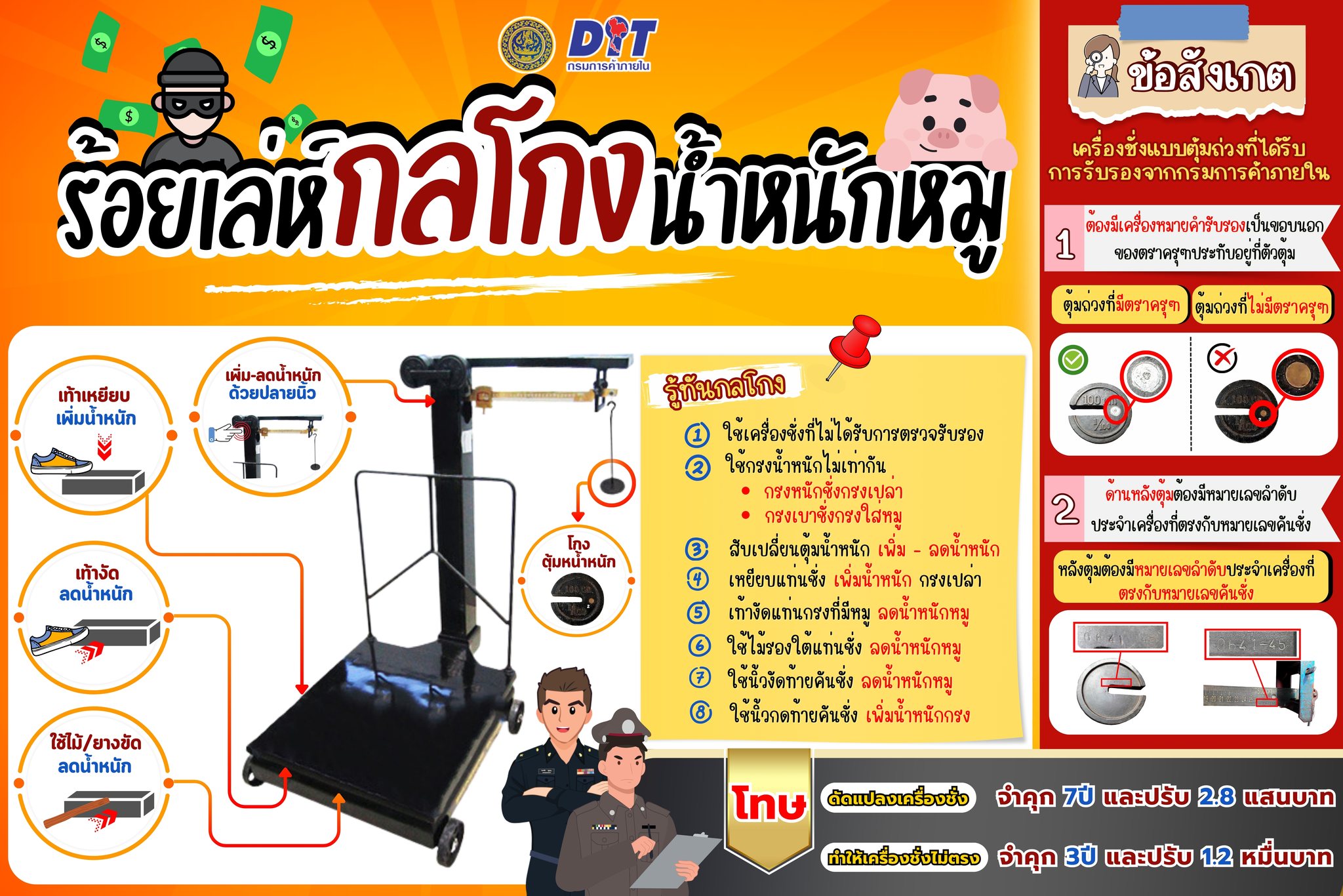 - ทำให้เครื่องชั่งไม่ตรง จำคุก 3 ปี และปรับ 1.2 หมื่นบาท