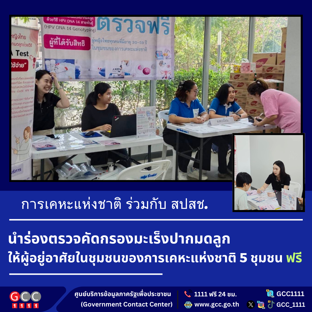 การเคหะแห่งชาติ ร่วมกับ สปสช. นำร่องตรวจคัดกรองมะเร็งปากมดลูก ให้ผู้อยู่อาศัยใน 5 ชุมชน ฟรี
