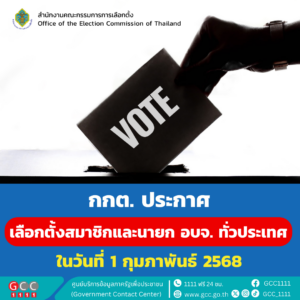 สำนักงานคณะกรรมการการเลือกตั้ง ประกาศให้วันที่ 1 กุมภาพันธ์ 2568 เป็นวันเลือกตั้งนายก อบจ. ทั่วประเทศ