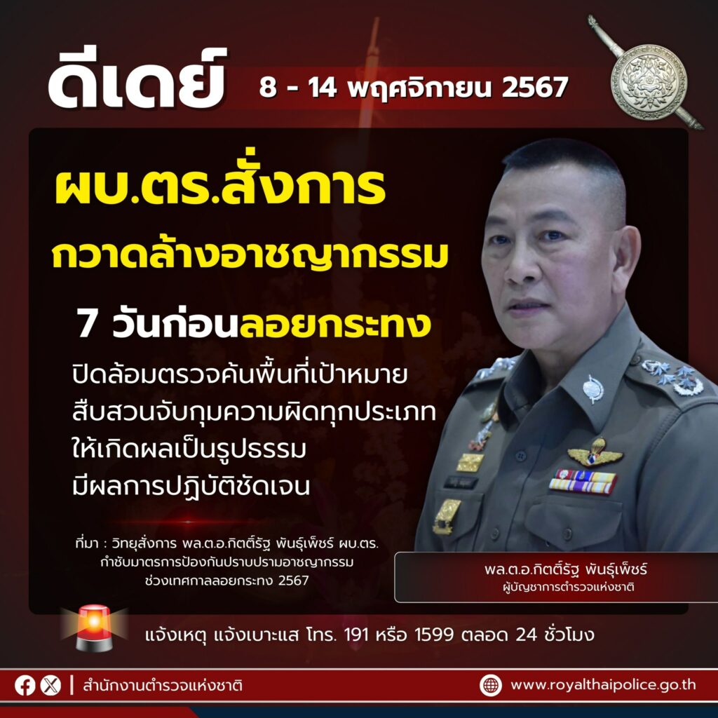 สำนักงานตำรวจแห่งชาติ สั่งการกวาดล้างอาชญากรรม 7 วันก่อนลอยกระทง