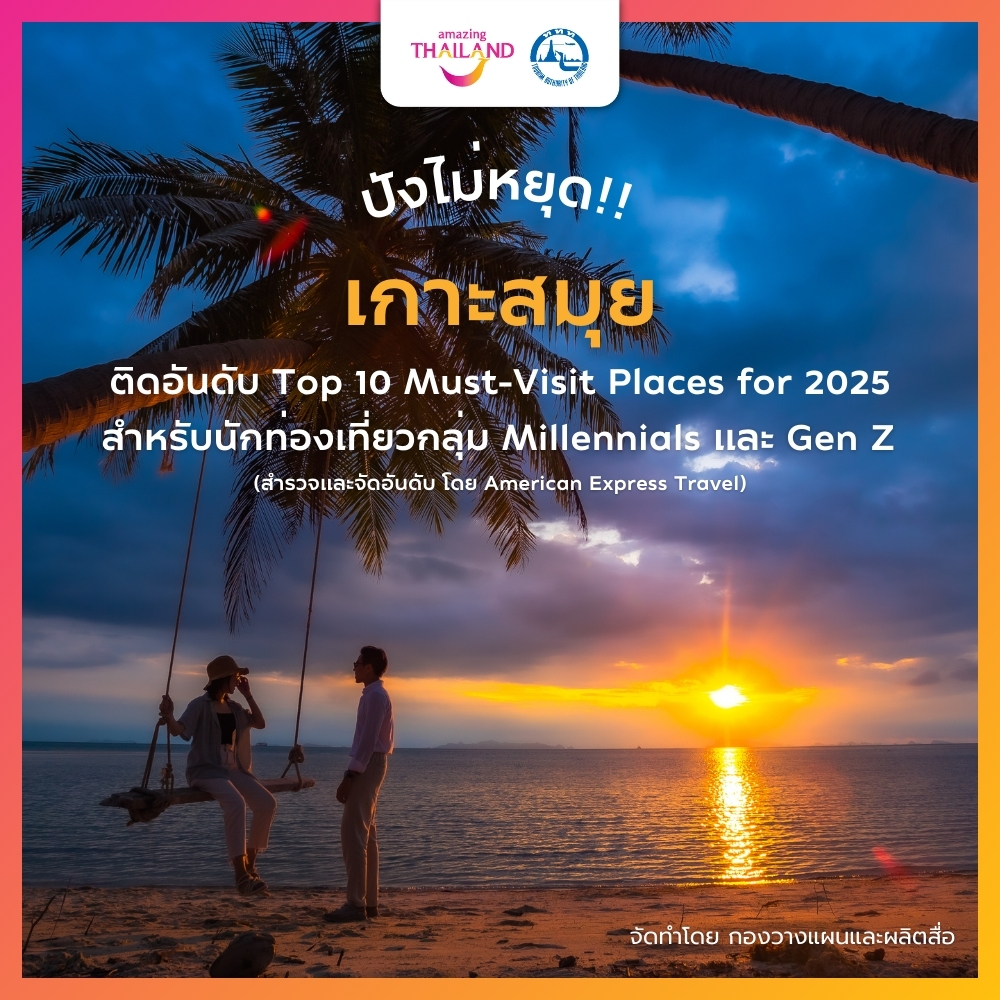 เกาะสมุย ประเทศไทย ติดอันดับจุดหมายปลายทางยอดนิยมที่ต้องไป ปี 2025 สำหรับนักท่องเที่ยวกลุ่ม Millennials และ Gen Z จากการจัดอันดับของ American Express Travel ผู้ให้บริการบัตรเครดิตระดับโลกจากสหรัฐอเมริกา ซึ่งใช้เกณฑ์การพิจารณาจากการจองของสมาชิกบัตร และข้อมูลจากเครือข่าย Amex Travel