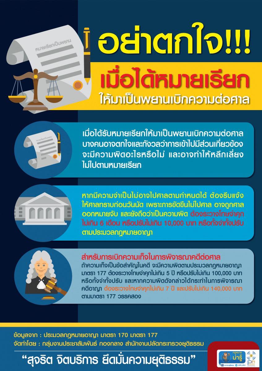 • กระทรวงยุติธรรม แจ้งอย่าตกใจ เมื่อได้หมายเรียกให้มาเป็นพยานเบิกความต่อศาล ดังนี้