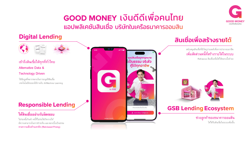 แพลตฟอร์ม GOOD MONEY – เงินดีดีเพื่อคนไทย นำเสนอผลิตภัณฑ์สินเชื่อรายย่อย 2 ประเภท ได้แก่ สินเชื่อส่วนบุคคล (Personal Loan) และ Nano Finance สำหรับผู้ที่ต้องการเงินทุนหมุนเวียนในการประกอบอาชีพหรือดำเนินธุรกิจ โดยมุ่งเน้นการสร้างหนี้ที่ก่อให้เกิดรายได้ (Productive Loan) ด้วยอัตราดอกเบี้ยที่เป็นธรรม เริ่มต้นที่ 19% ต่อปี นอกจากนี้ ยังให้ความสำคัญกับการปล่อยสินเชื่ออย่างรับผิดชอบ โดยใช้ระบบการประเมินคุณสมบัติผู้ขอกู้ที่พิจารณาจากอัตราส่วนภาระการชำระหนี้ต่อรายได้ (DSR) และอัตราดอกเบี้ยตามความเสี่ยง (Risk-Based Pricing) เพื่อให้มั่นใจว่าลูกค้ามีความสามารถในการชำระหนี้ได้โดยไม่เกิดปัญหาหนี้เกินตัว ที่สำคัญลูกค้าที่มีประวัติการชำระหนี้ดีอย่างต่อเนื่องจะมีโอกาสได้รับอัตราดอกเบี้ยที่ต่ำลง ซึ่งเป็นการส่งเสริมวินัยทางการเงินที่ดี และเปิดโอกาสให้ลูกค้าสามารถพัฒนาไปสู่การใช้บริการสินเชื่อของธนาคารออมสินในอนาคต ผู้ที่สนใจสามารถดาวน์โหลดแอปพลิเคชัน Good Money by GSB ได้แล้ว ทั้งในระบบ iOS และ Android โดยลูกค้าธนาคารออมสินสามารถยืนยันตัวตนผ่านแอปพลิเคชัน MyMo ส่วนลูกค้าทั่วไปสามารถยืนยันตัวตนด้วยบัตรประชาชนที่สาขาธนาคารออมสิน ทั่วประเทศ ติดตามรายละเอียดที่ https://goodmoneybygsb.com/ หรือดาวน์โหลดแอปพลิเคชันที่ https://goodmoneybygsb.go.link/64pm7