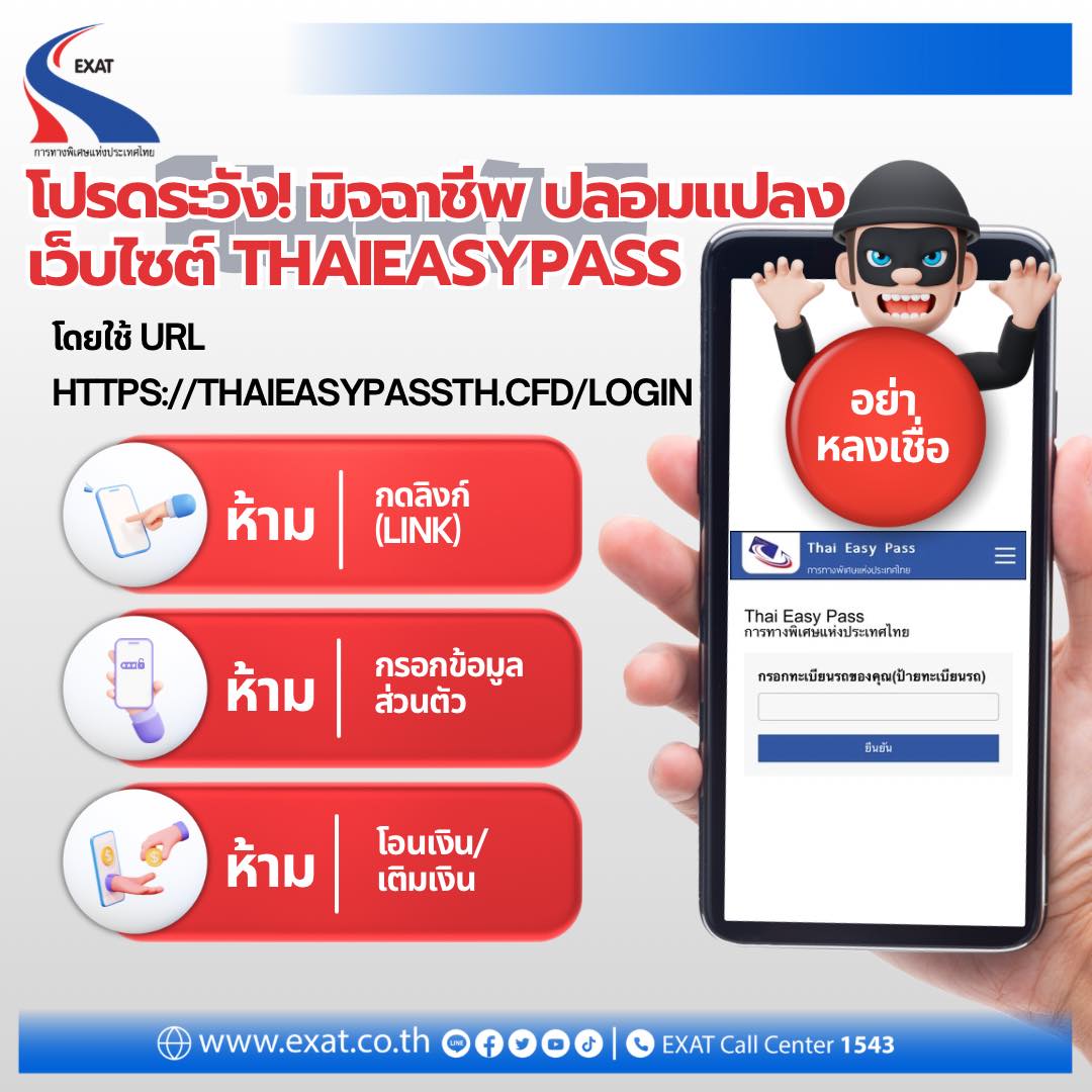 การทางพิเศษแห่งประเทศไทย เตือนภัย ระวังมิจฉาชีพ ปลอมแปลง เว็บไซต์ thaieasypass สร้างเว็บไซต์ปลอม