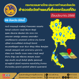 ประกาศกระทรวงมหาดไทย เรื่อง กำหนดจังหวัดที่จะทำการสำรวจรังวัดทำแผนที่เพื่อออกโฉนดที่ดิน ปีงบประมาณ พ.ศ. 2568 ทั้งหมด 69 จังหวัด