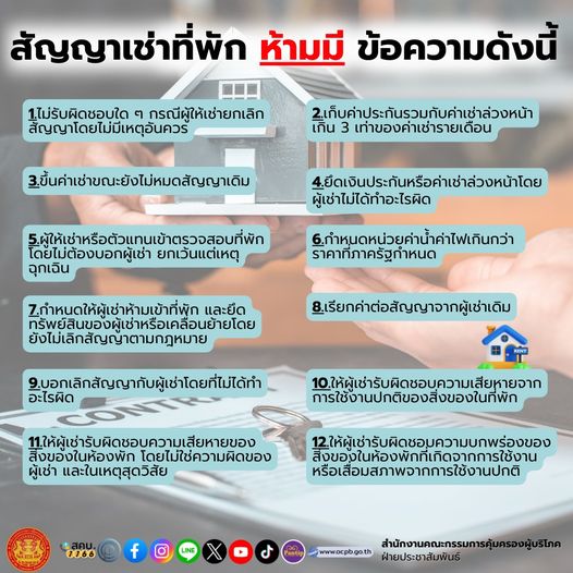 สำนักงานคณะกรรมการคุ้มครองผู้บริโภค เปิดเผย 12 ข้อความ ห้ามมีในสัญญาเช่าที่พัก