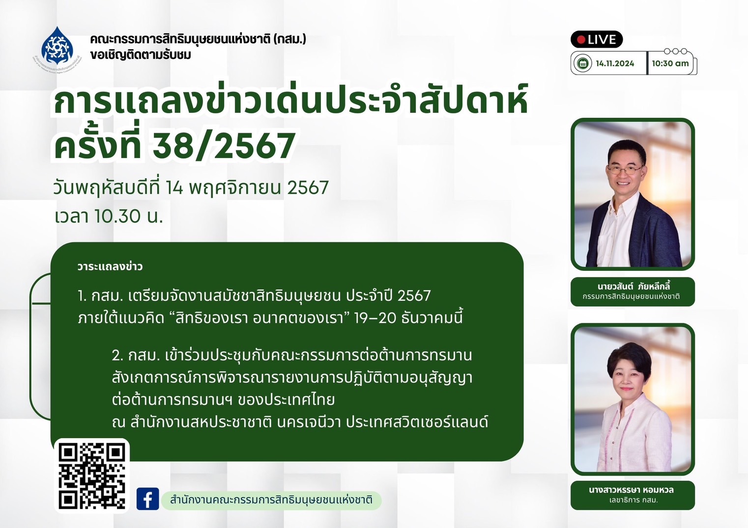 กสม. จัดการแถลงข่าวเด่นประจำสัปดาห์ครั้งที่ 38/2567