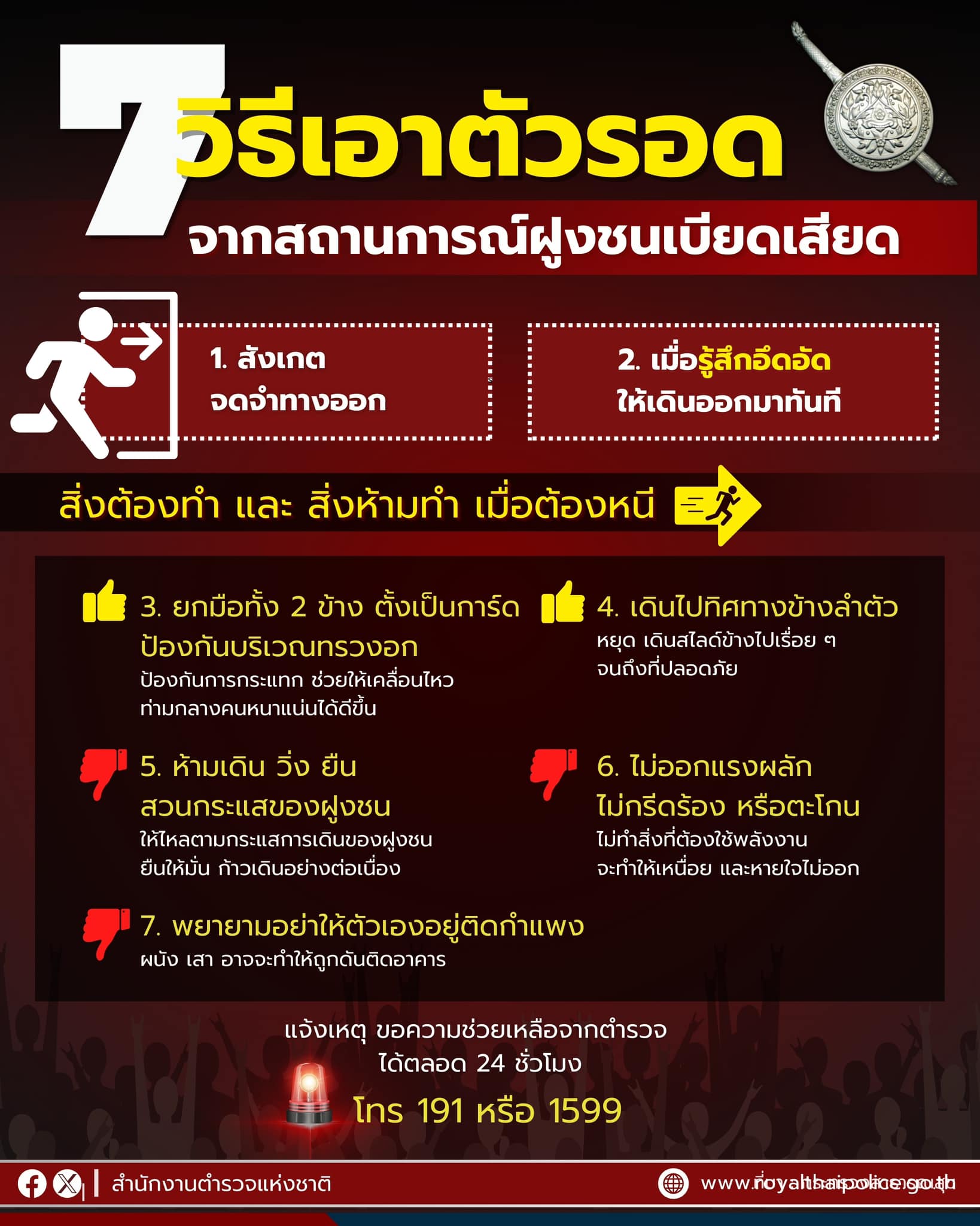 สำนักงานตำรวจแห่งชาติ แนะนำ 7 วิธีเอาตัวรอดจากสถานการณ์ฝูงชนเบียดเสียด