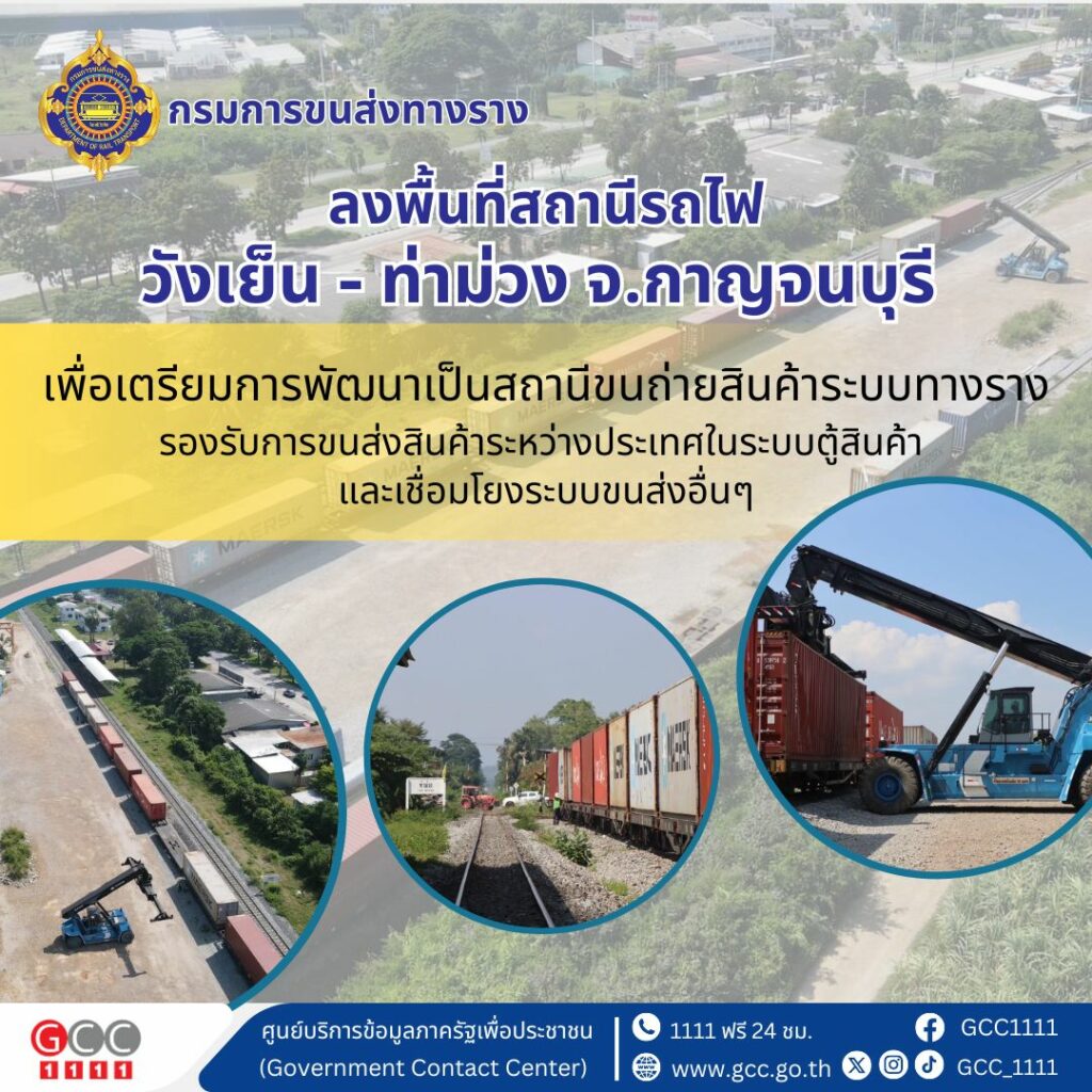 กรมการขนส่งทางราง ลงพื้นที่สถานีรถไฟวังเย็น – ท่าม่วง จ.กาญจนบุรี เพื่อตรียมการพัฒนาเป็นสถานีขนถ่ายสินค้าระบบทางราง รองรับการขนส่งสินค้าระหว่างประเทศในระบบตู้สินค้า และเชื่อมโยงระบบขนส่งอื่นๆ ซึ่งจะเป็นจุดรวมสินค้าในเขตพื้นที่ภาคกลาง จังหวัดกาญจนบุรี ราชบุรี นครปฐม กรุงเทพมหานคร เป็นต้น โดยสินค้าที่เข้าสู่พื้นที่มีทั้งจากประเทศเมียนมาที่จะผ่านเข้ามาทางด่านพุน้ำร้อนเพื่อขนส่งผ่านไทยไปสู่ประเทศมาเลเซีย คาดว่าจะมีปริมาณตู้สินค้าเมียนมา – มาเลเซีย ราว 200 TEU/สัปดาห์ และจะเป็นจุดการนำเข้า – ส่งออกสินค้าในเขตพื้นที่ภาคกลางไปยังประเทศลาวและจีน ผ่านเส้นทางรถไฟทางคู่ด่านหนองคายทั้งนี้ จะเป็นจุดเชื่อมโยงการนำเข้า – ส่งออกสินค้า รองรับปริมาณสินค้าที่มาจากท่าเรือคลองเตยด้วยระบบรางเพื่อลดความแออัดของปริมาณจราจรที่จะเข้าสู่พื้นที่กรุงเทพมหานครและปริมณฑลได้อีกด้วย