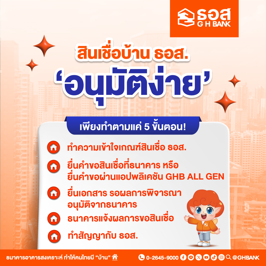 ธนาคารอาคารสงเคราะห์ แนะนำ สินเชื่อบ้าน ธอส. อนุมัติง่าย เพียงทำ 5 ขั้นตอน