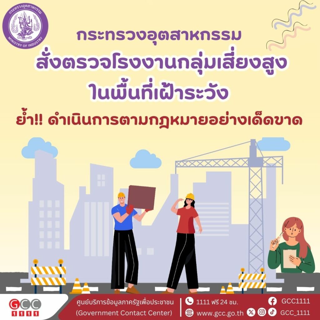 กระทรวงอุตสาหกรรม สั่งตรวจโรงงานกลุ่มเสี่ยงสูงในพื้นที่เฝ้าระวัง ย้ำ! ดำเนินการตามกฎหมายอย่างเด็ดขาด