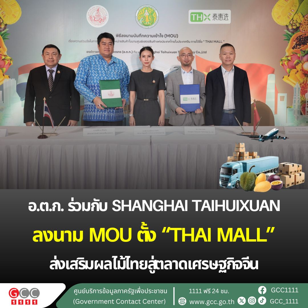 อ.ต.ก. ร่วมกับ Shanghai Taihuixuan ลงนาม MOU ตั้ง “THAI MALL” ส่งเสริมผลไม้ไทยสู่ตลาดเศรษฐกิจจีน