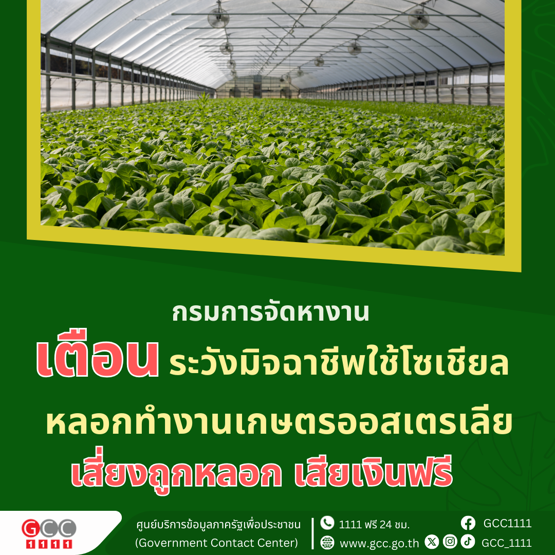 กรมการจัดหางาน เตือนคนหางาน ระวังมิจฉาชีพใช้โซเชียล หลอกทำงานเกษตรออสเตรเลีย