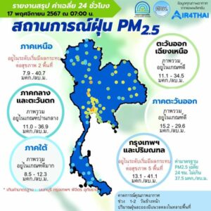 ศูนย์สื่อสารการแก้ไขปัญหามลพิษทางอากาศ รายงานการติดตามตรวจสอบคุณภาพอากาศ ประจำวันที่ 17 พฤศจิกายน 2567
