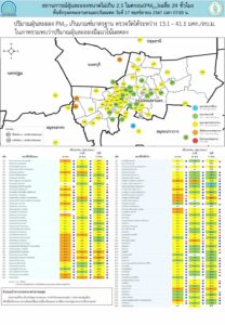 - กรุงเทพมหานครและปริมณฑล เกินค่ามาตรฐาน 5 พื้นที่ ตรวจวัดได้ 13.1 – 41.1 ไมโครกรัมต่อลูกบาศก์เมตร