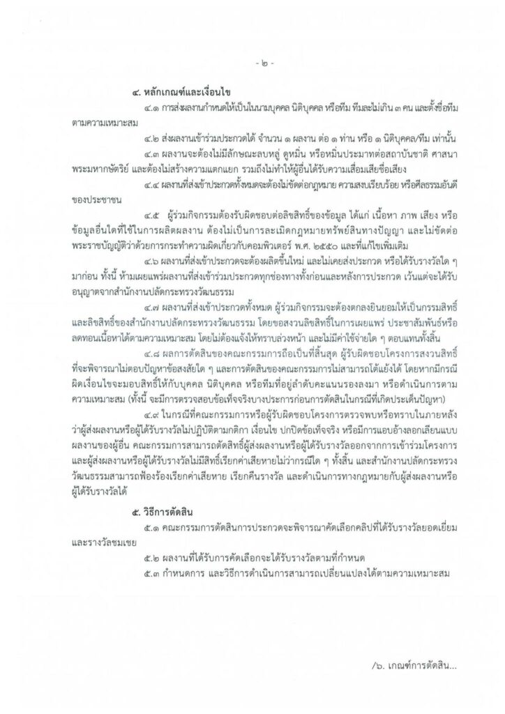 - ส่งแนวคิดในการสร้างคลิปวิดีโอในรูปแบบไฟล์ Microsoft Word พร้อมผลงาน มาที่ Email: culture.scm02@gmail.com