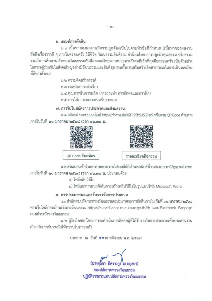 - จบผลงานด้วยตรากระทรวงวัฒนธรรมและสัญลักษณ์ “1765 สายด่วนวัฒนธรรม” (ดาวน์โหลดได้จาก QR Code)