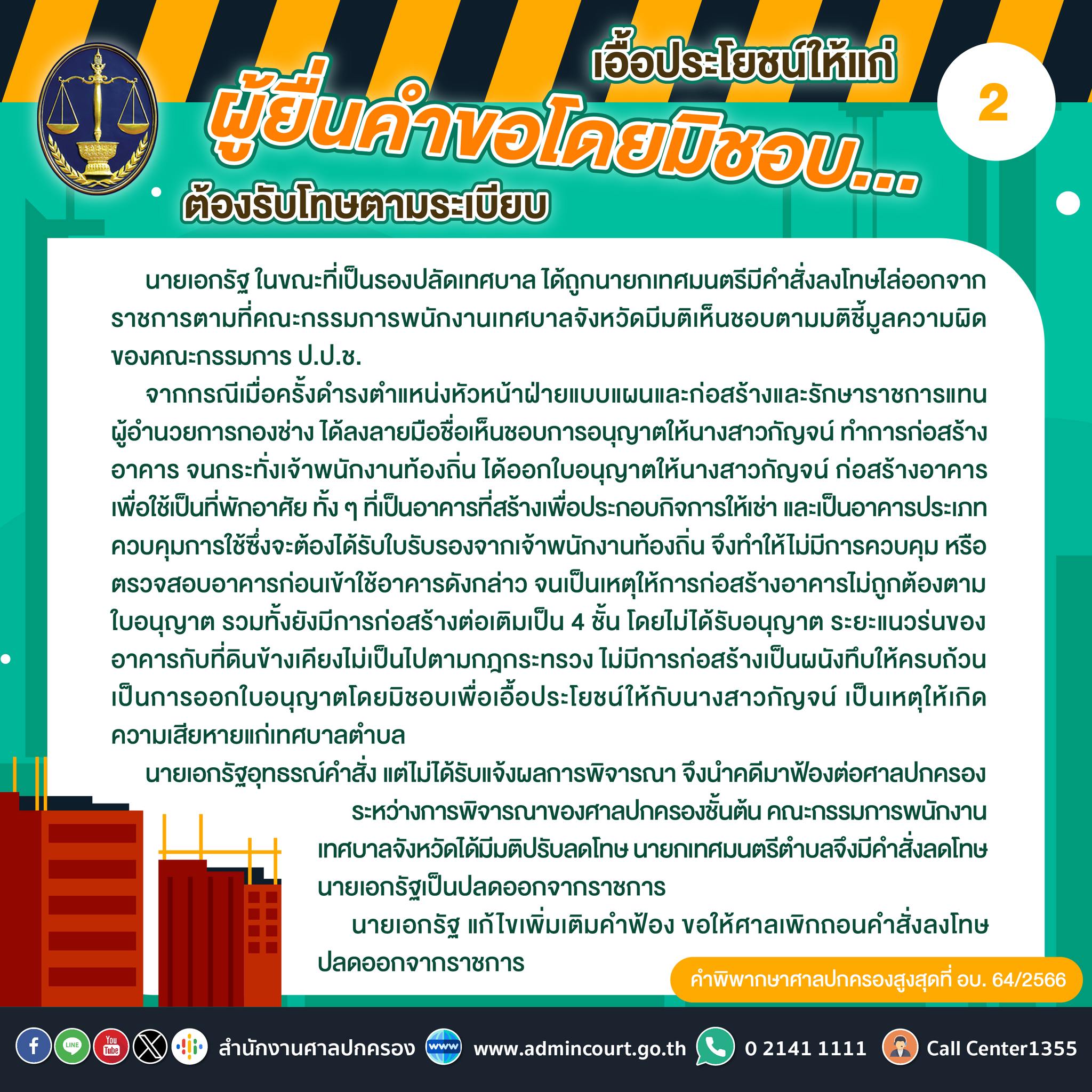 สำนักงานศาลปกครอง แจ้งเตือนเอื้อประโยชน์ให้แก่ผู้ยื่นคำขอโดยมิชอบ ต้องรับโทษตามระเบียบ