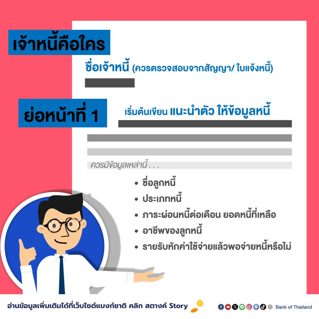 ธนาคารแห่งประเทศไทย แนะนำเขียนจดหมายยังไงให้เจ้าหนี้ยอมช่วย