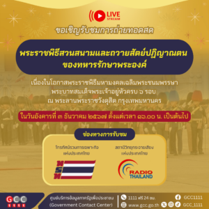 กองทัพไทย ขอเชิญรับชมการถ่ายทอดสดพระราชพิธีสวนสนาม ฯ ในวันอังคารที่ 3 ธันวาคม 2567