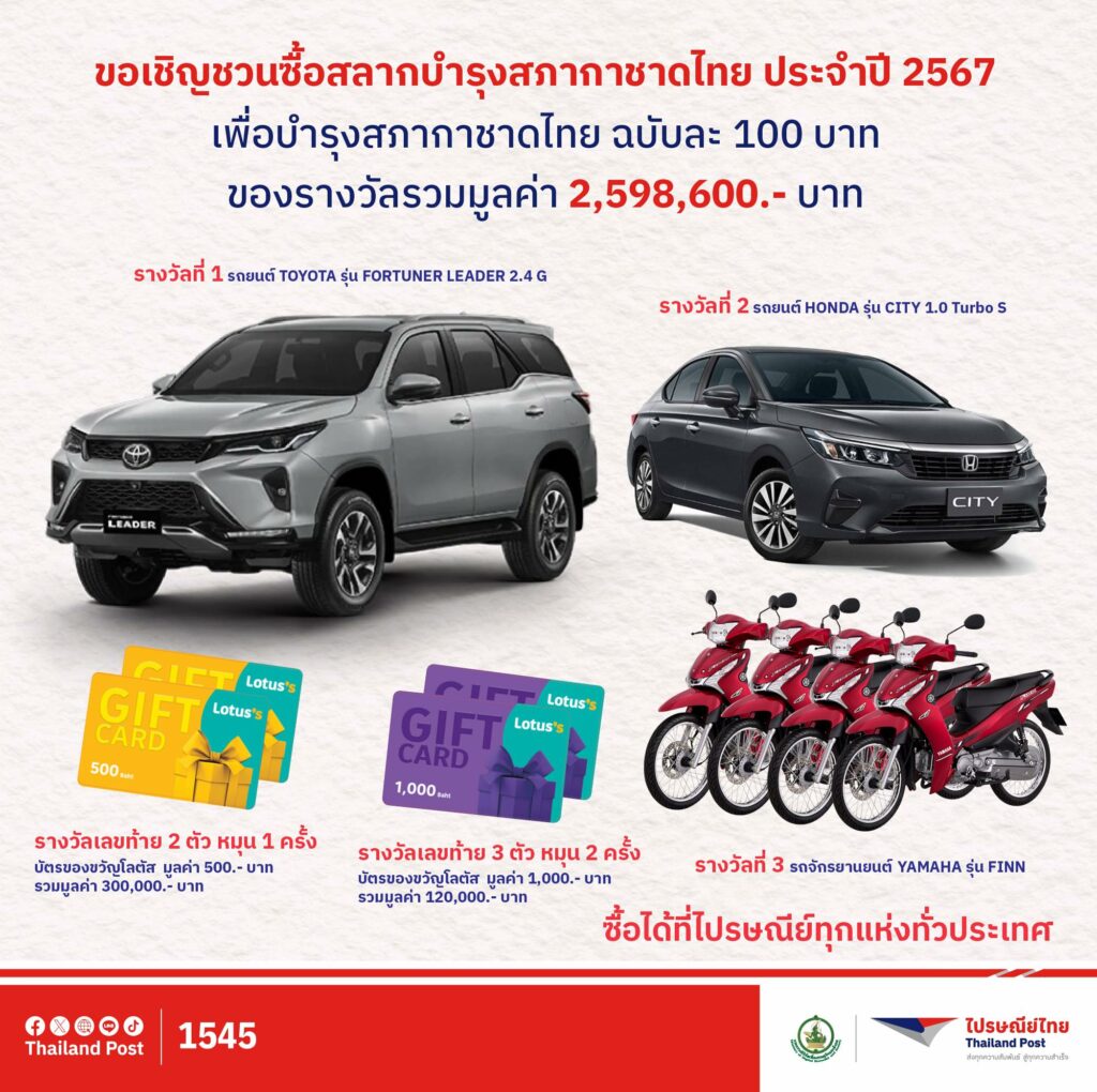 ไปรษณีย์ไทย ขอเชิญชวนซื้อสลากบำรุงสภากาชาดไทย ประจำปี 2567