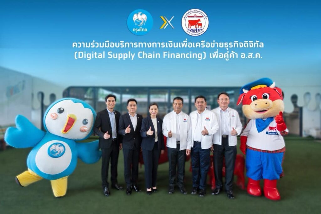 ธนาคารกรุงไทย มุ่งมั่นขับเคลื่อน “นวัตกรรมสร้างคุณค่า ตอบโจทย์ลูกค้า สู่ความยั่งยืน” พัฒนาด้านนวัตกรรม เทคโนโลยี และแพลตฟอร์มใหม่ๆ เพิ่มขีดความสามารถในการบริการ โดยคำนึงถึงลูกค้าเป็นสำคัญ ภายใต้ยุทธศาสตร์การต่อยอดธุรกิจจากคู่ค้าของลูกค้า (X2G2X) ทำให้สามารถขยายบริการทางการเงิน เพื่อเสริมสภาพคล่องให้คู่ค้าเข้าถึงแหล่งเงินทุนได้สะดวก โดยความร่วมมือในครั้งนี้ ธนาคารกรุงไทยสนับสนุนสินเชื่อให้กับลูกค้าและคู่ค้าของ อ.ส.ค. ผ่านโครงการ Digital Supply Chain Financing ซึ่งปัจจุบันธนาคารได้เชื่อมโยงการทำธุรกรรมการค้าในห่วงโซ่อุปทานแต่ละรายการกับเทคโนโลยี Digital Supply Chain Financing Platform ของธนาคาร ในการพิจารณาวงเงินสินเชื่อให้กับผู้ประกอบการ ทดแทนเอกสารแสดงฐานะทางการเงิน สอดรับกับแนวทางการพัฒนาโครงสร้างพื้นฐานทางการเงินและการชำระเงินของประเทศที่สนับสนุนให้ภาคธุรกิจทำธุรกรรมการค้าดิจิทัลครบวงจร เพิ่มโอกาสให้ผู้ประกอบการสามารถเข้าถึงสินเชื่อ โดยไม่ต้องใช้หลักทรัพย์ค้ำประกัน เพื่อเสริมสภาพคล่องในการดำเนินธุรกิจและรองรับการเติบโตของกิจการ พร้อมยกระดับอุตสาหกรรมโคนมของประเทศไทยให้เติบโตอย่างยั่งยืน