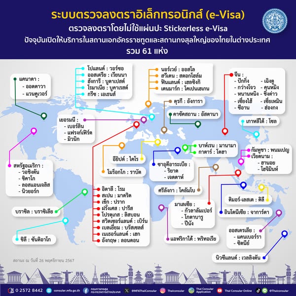 กรมการกงสุล เปิดให้บริการระบบตรวจลงตราอิเล็กทรอนิกส์ (e-Visa) รวม 61 แห่ง