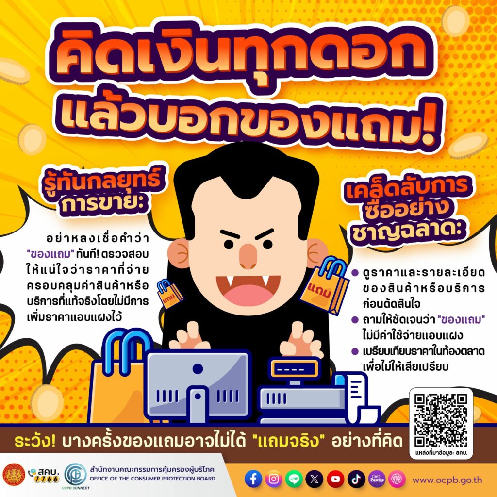 สำนักงานคณะกรรมการคุ้มครองผู้บริโภค แนะนำรู้ทันกลยุทธ์การขาย อย่าหลงเชื่อของแถมทันที